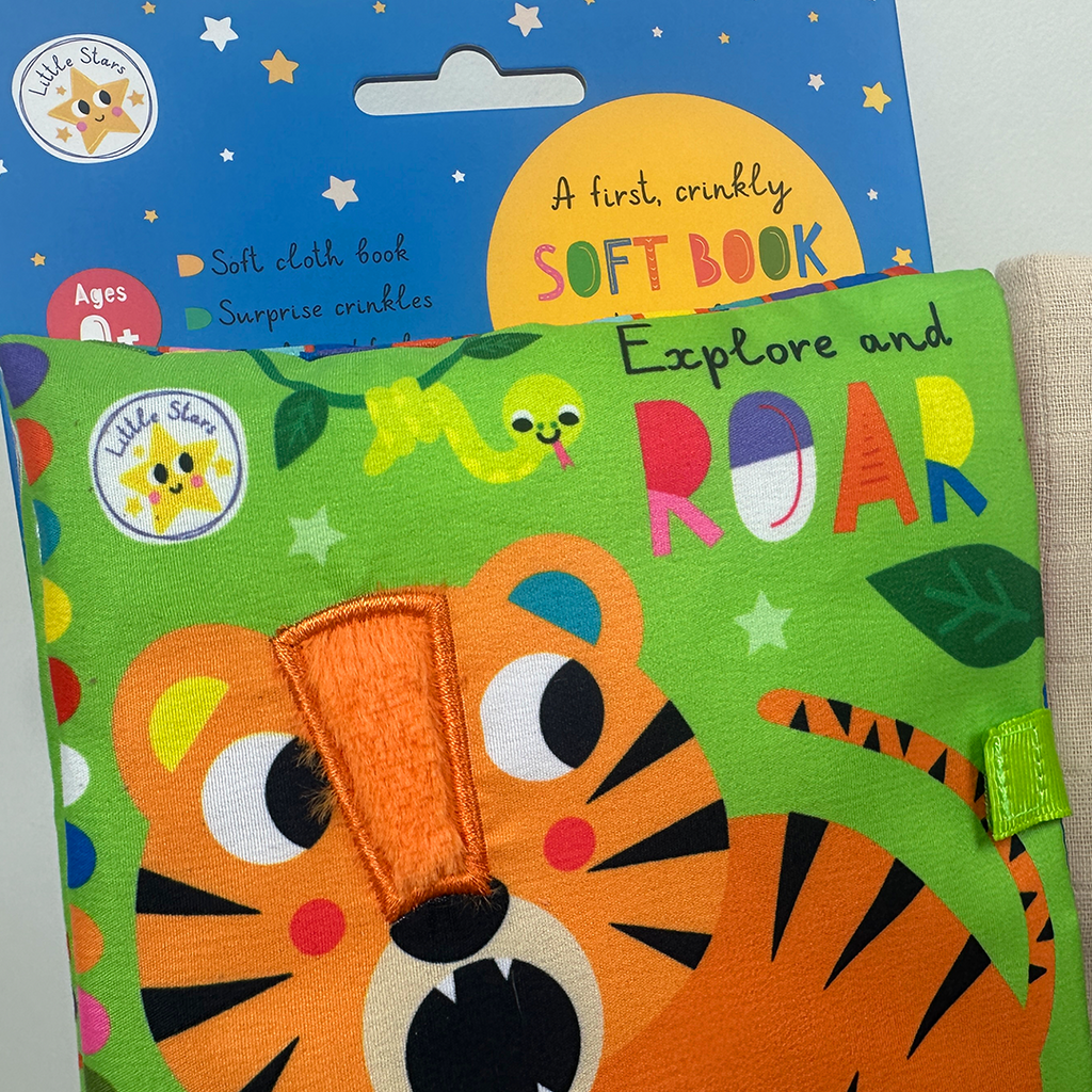 “Explore and Roar” Soft Book – a sensory book that encourages tactile exploration and storytime bonding