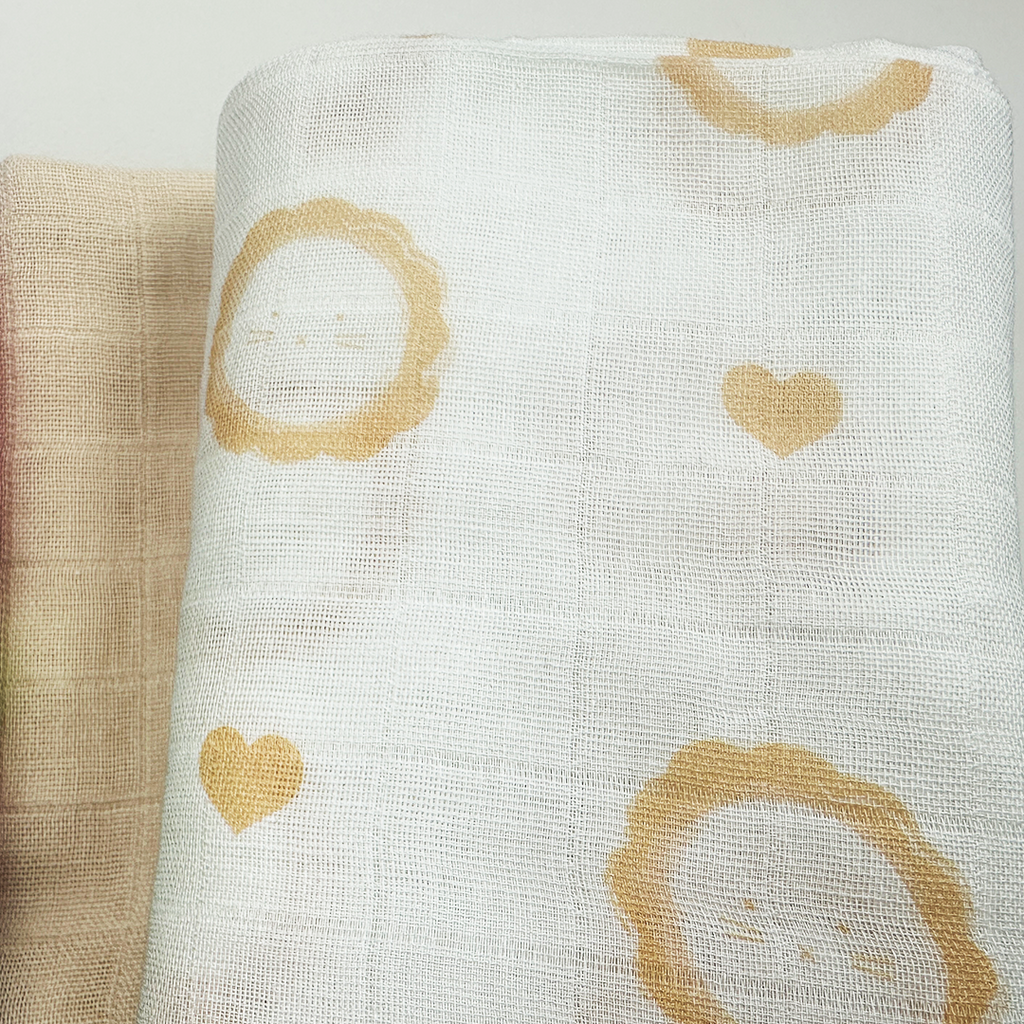 • Little Muslins Set including 60x60 cm lion pattern muslin & 60x60 cm beige muslin
